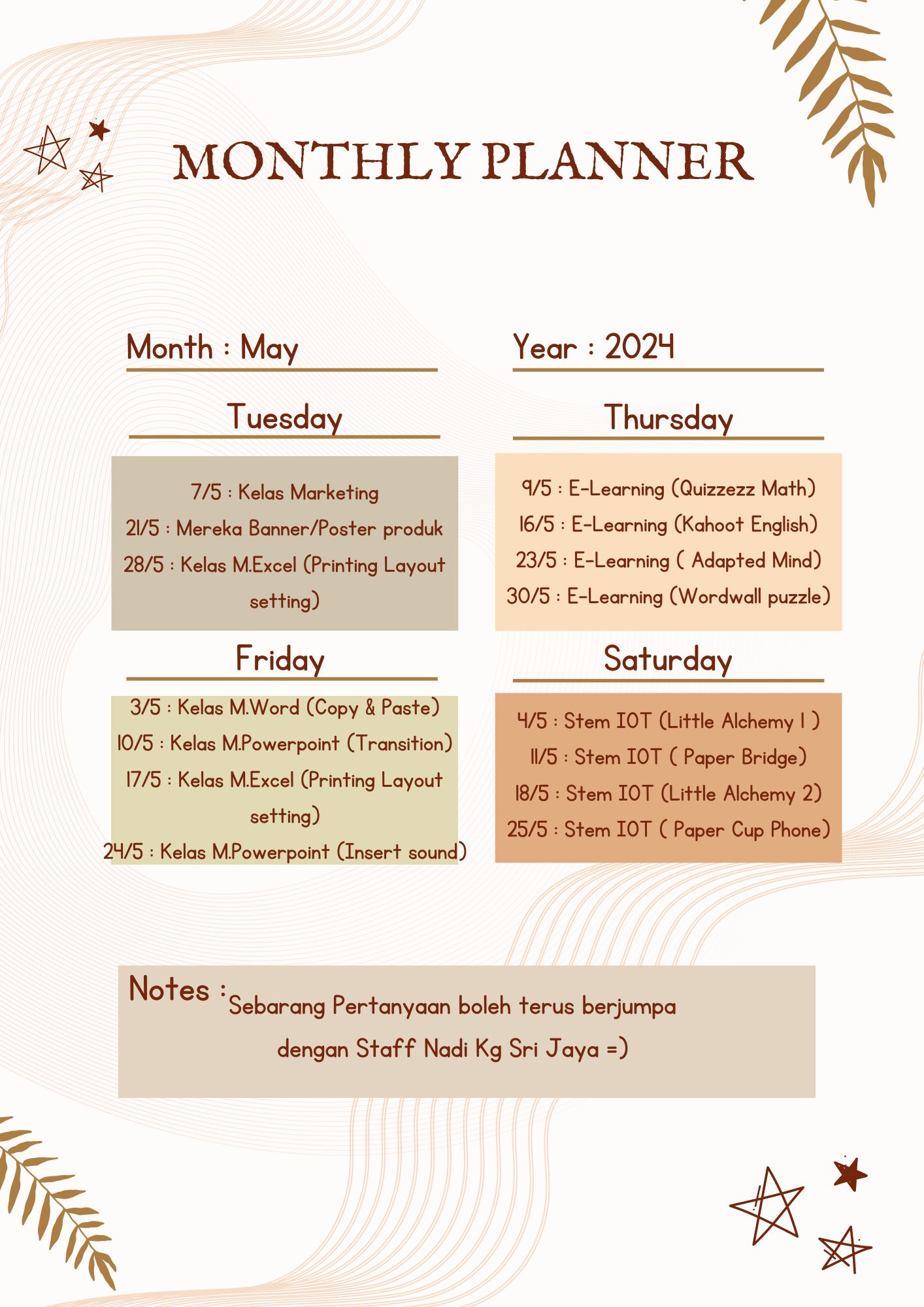 JADUL AKTIVITI BULANAN